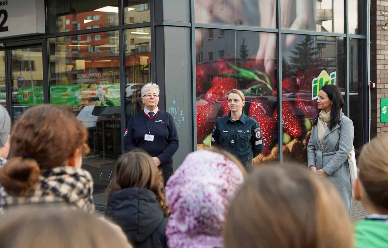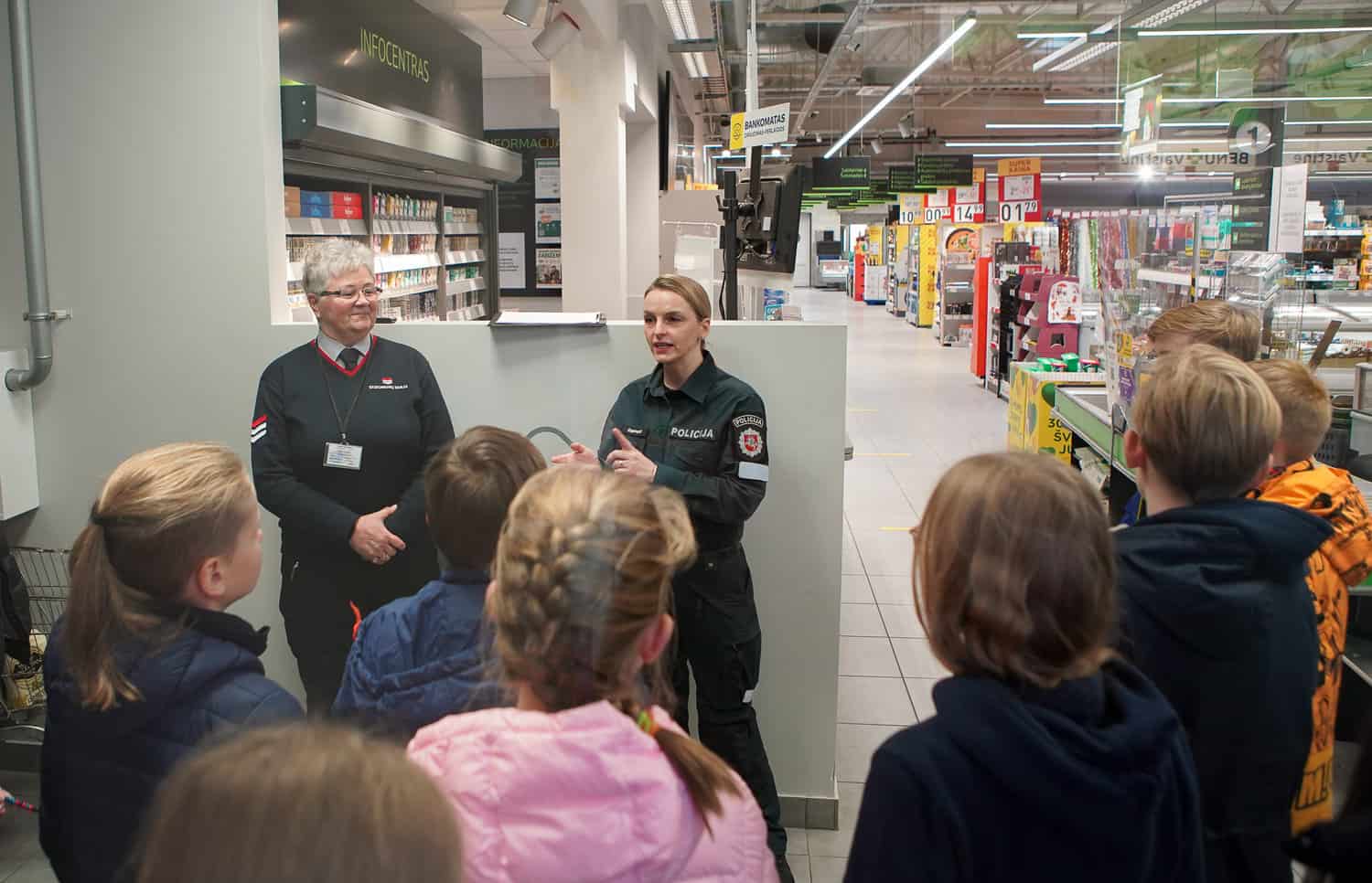 „Ekskomisarų biuro“ atstovė informavo vaikus, koks bendraamžių nesąžiningas elgesys nepraslysta pro akis apsaugininkams: nuo tiesiog parduotuvėje suvalgomų saldainių iki sprendimo susimokėti tik už vieną prekę, o kitą paslėpti savo rankovėje ar net bičiulio kišenėje. Išaiškino dažnos situacijos pavojų, kuomet vagiliauti įkalbinėja ne tik vyresni vaikai, bet ir šalia parduotuvių besibūriuojantys įtartini suaugusieji, bei būtinybę tokiu atveju kreiptis į apsaugą. Moksleiviams buvo įteikta po atšvaitą, priminta apie jų dėvėjimo svarbą ir kitas saugaus elgesio kelyje taisykles.